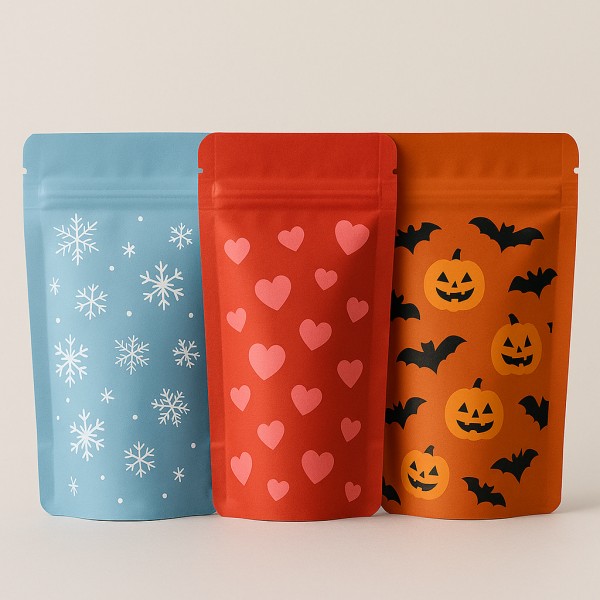 - Family Share: BOPP//VMPET//CPP for stiffness + zipper reclose